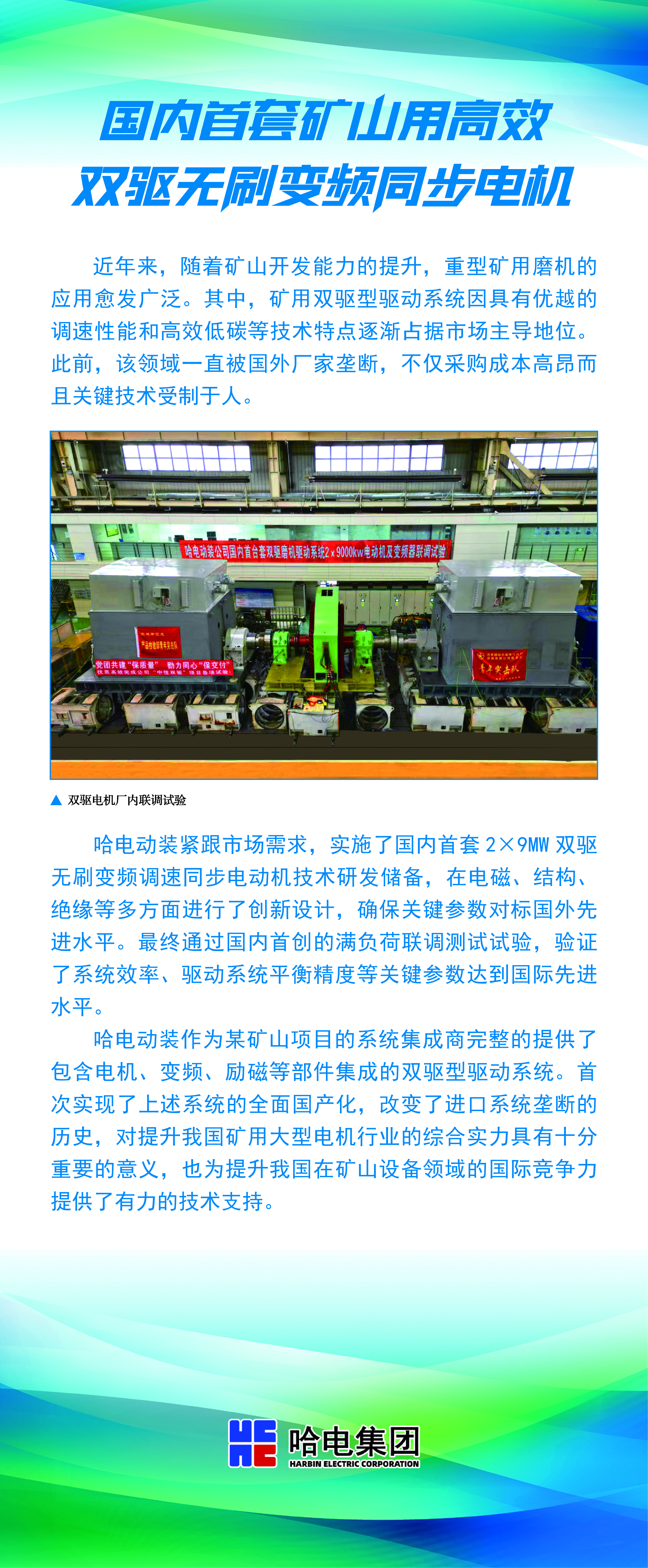 海内首套矿山用高效双驱无刷变频同步电机
